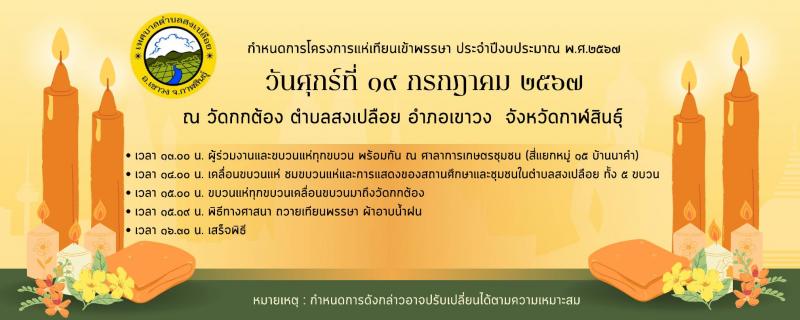 ขอเชิญเที่ยวงานประเพณีแห่เทียนเข้าพรรษาตำบลสงเปลือย ประจำปี พ.ศ ๒๕๖๗ ในวันที่ ๑๙ กรกฎาคม พ.ศ.๒๕๖๗