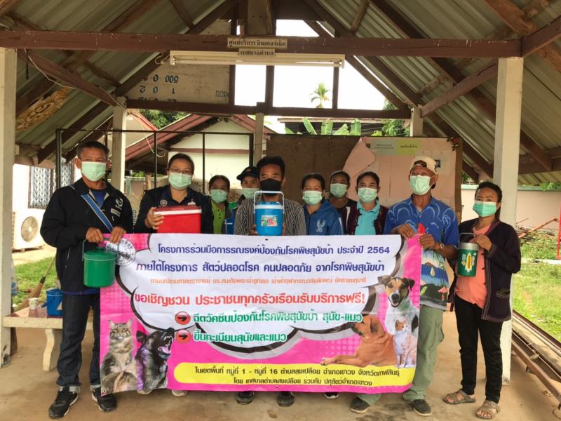 ฉีดวัคซีนป้องกันโรคพิษสุนัขบ้าตามโครงการสัตว์ปลอดโรค คนปลอดภัย จากโรคพิษสุนัขบ้า ตามพระปณิธานศาสตราจารย์ ดร.สมเด็จพระเจ้าน้องนางเธอ เจ้าฟ้าฯกรมพระศรีสวางควัฒนวรขัติยราชนารี ประจำปี 2564