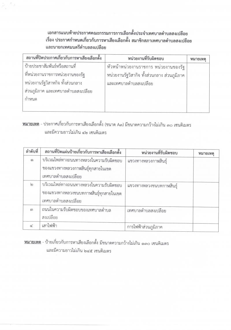 ประกาศคณะกรรมการการเลือกตั้งประจำเทศบาลตำบลสงเปลือย เรื่อง ประกาศกำหนดเกี่ยวกับการหาเสียงเลือกตั้งสมาชิกสภาเทศบาล และนายกเทศมนตรีตำบลสงเปลือย