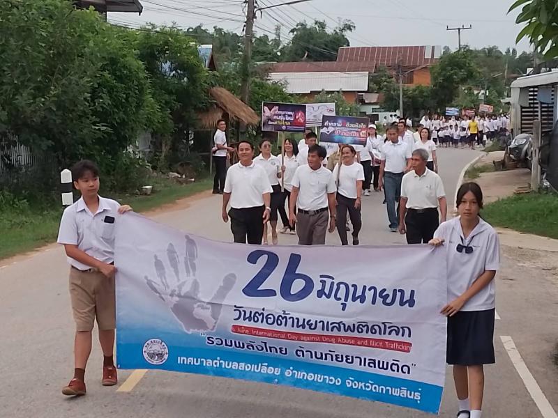 วันที่ 26 มิถุนายน 2566 เวลา 08.00 น. เทศบาลตำบลสงเปลือย ร่วมกับโรงเรียนหนองแสงถวิลราษฎร์ โรงเรียนชุมชนกุดบอดวิทยา้สริม โรงเรียนพุทโทภาวนาประชาสรรค์ และโรงพยาบาลส่งเสริมสุขภาพตำบลกุดบอด ได้ร่วมกันเดินรณรงค์ต่อต้ายยาเสพติดเนื่องในวันต่อต้านยาเสพติดโลกวันที่ 26 มิถุนายน ของทุกปี