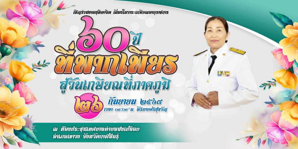 วันที่ 26 กันยายน 2568 เวลา 09.09 น. ขอเชิญร่วมงานมุทิตาจิตผู้เกษียณอายุราชการ ประจำปีงบประมาณ พ.ศ. 2568 นางโพนศรี ขยอมดอก ตำแหน่งผู้อำนวยการกองคลัง เพื่อเป็นขวัญกำลังใจ ยกย่องชมเชย และเชิดชูเกียรติ... [23 กันยายน 2568]
