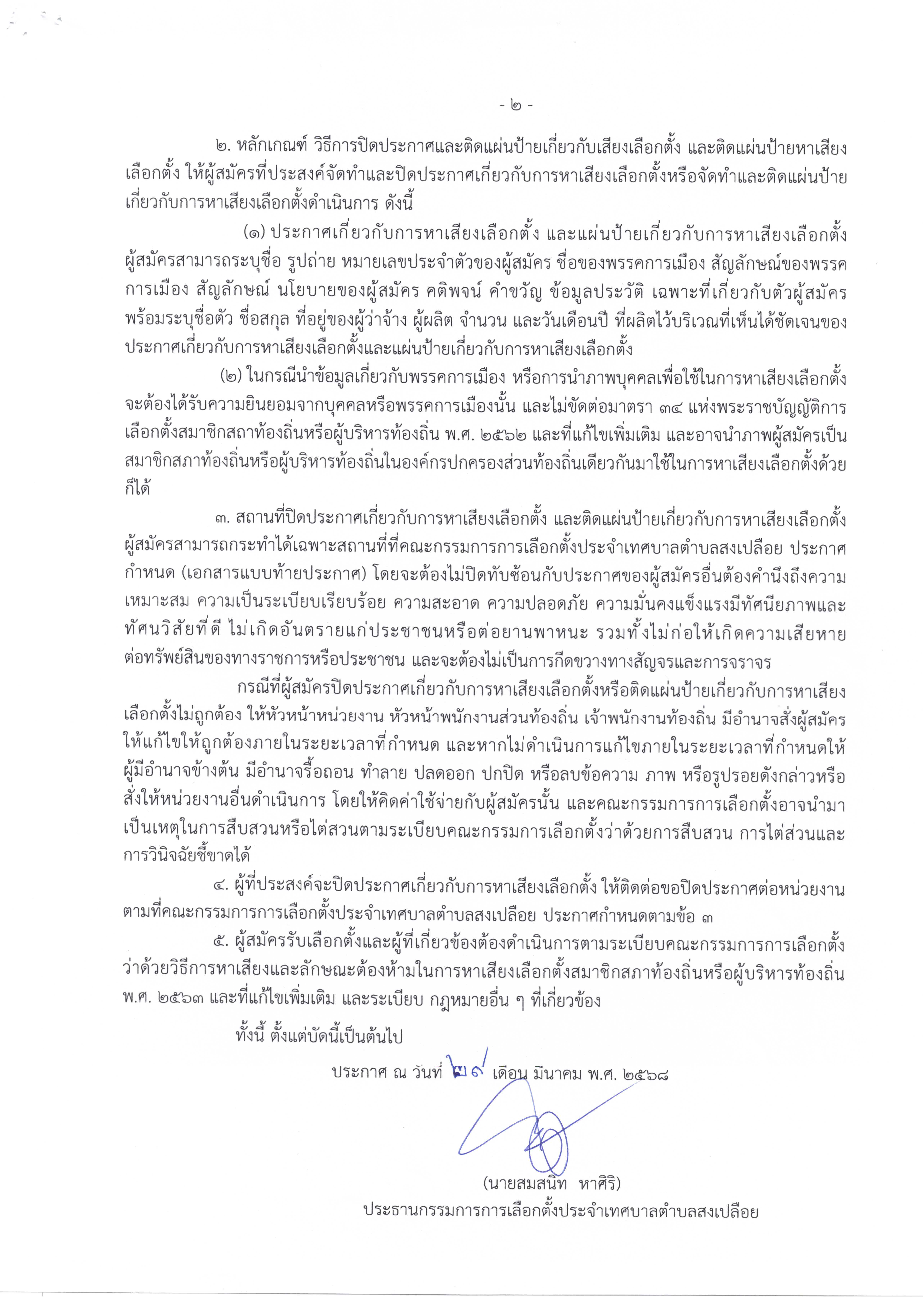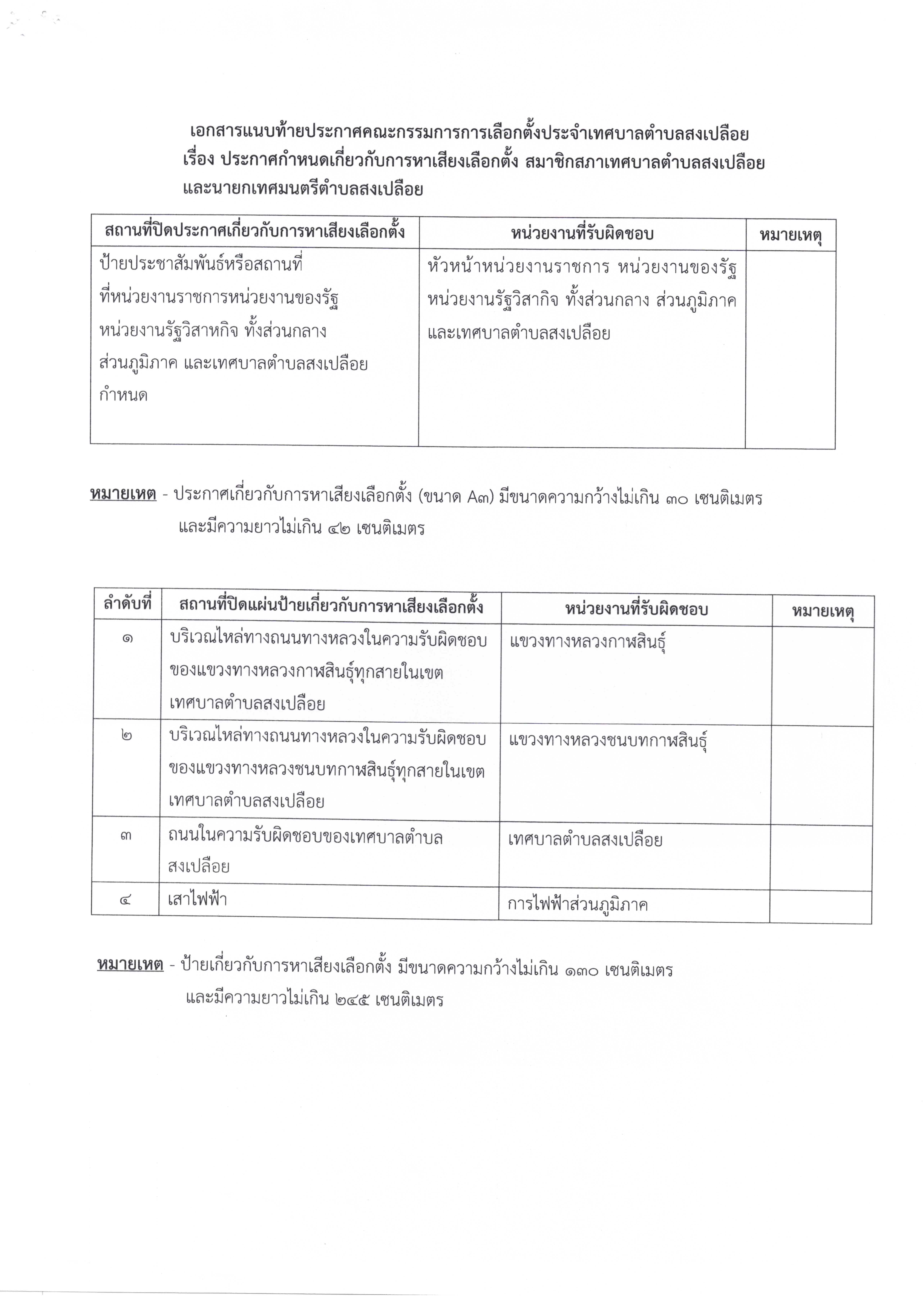 ประกาศคณะกรรมการการเลือกตั้งประจำเทศบาลตำบลสงเปลือย เรื่อง ประกาศกำหนดเกี่ยวกับการหาเสียงเลือกตั้งสมาชิกสภาเทศบาล และนายกเทศมนตรีตำบลสงเปลือย